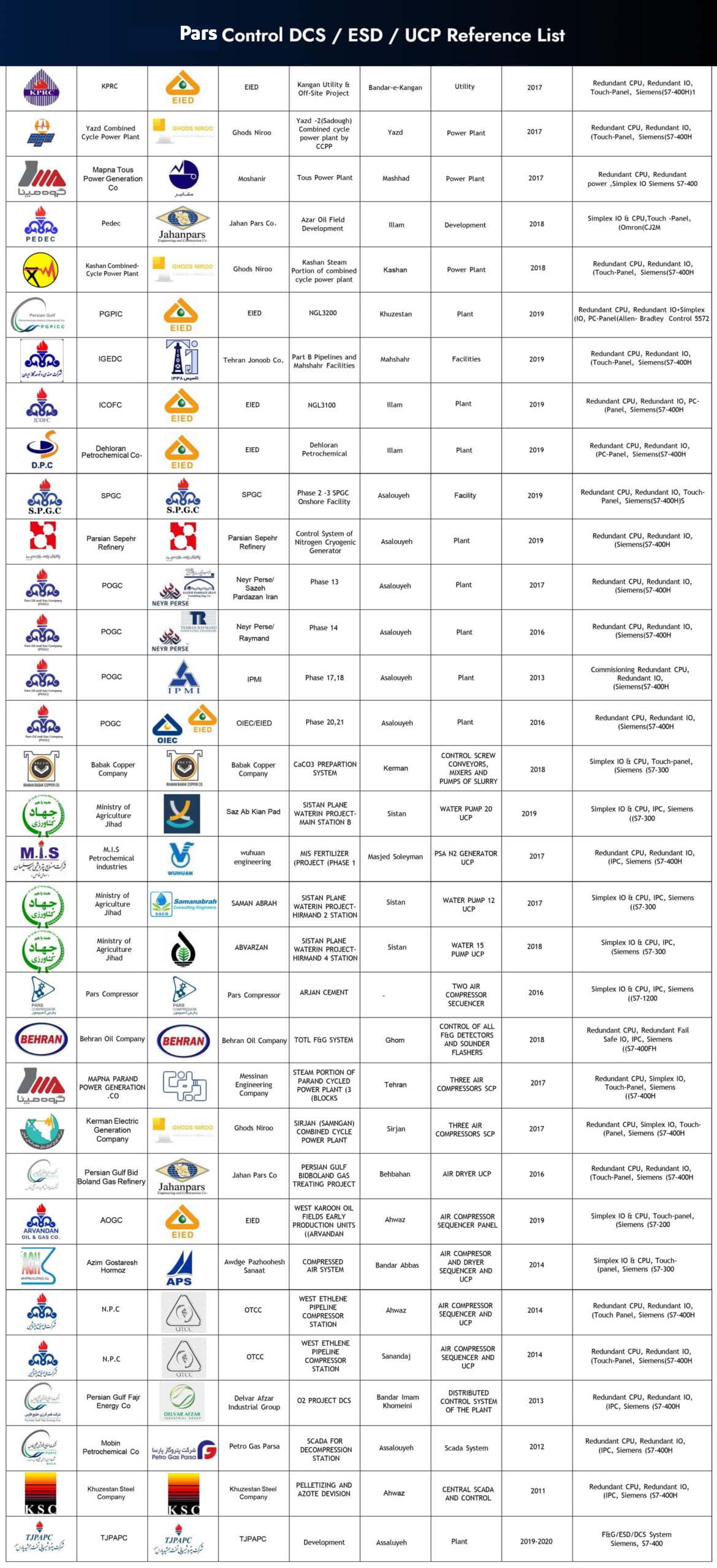 رفرنس لیست سیستم های DCS / ESD / UCP
